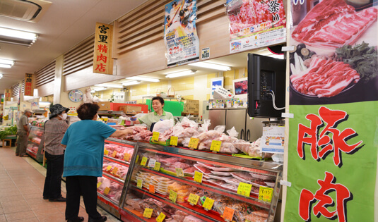 宮里精肉店 店舗紹介 基本情報 名護市営市場:1F 【営業時間】8:00~19:00 【電 話】0980-52-2097 【定休日】不定休 【取扱商品】精肉 ※豚肉・牛・鳥肉やウィンナー等 オススメ商品 豚肉類ぜんぱん! 県産豚を中心に、お客様へ販売できるよう努めています。美味しい県産豚肉は、いかがでしょうか?! 店内の様子
